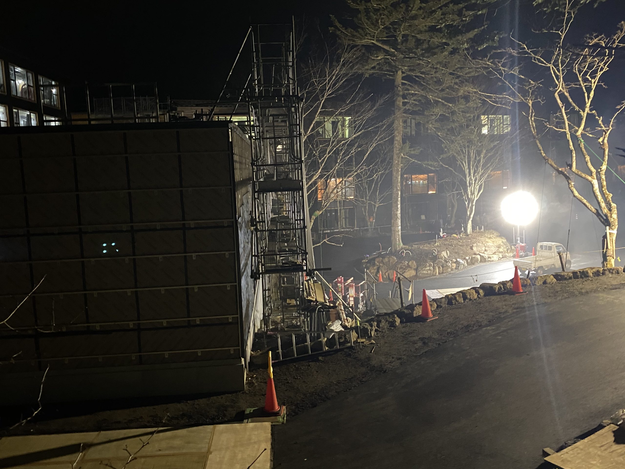こちらも少し幻想的な感じになってますが、実際は普通に工事現場です。