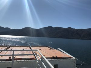 デッキでは風の音で船内放送は聞こえづらいです。